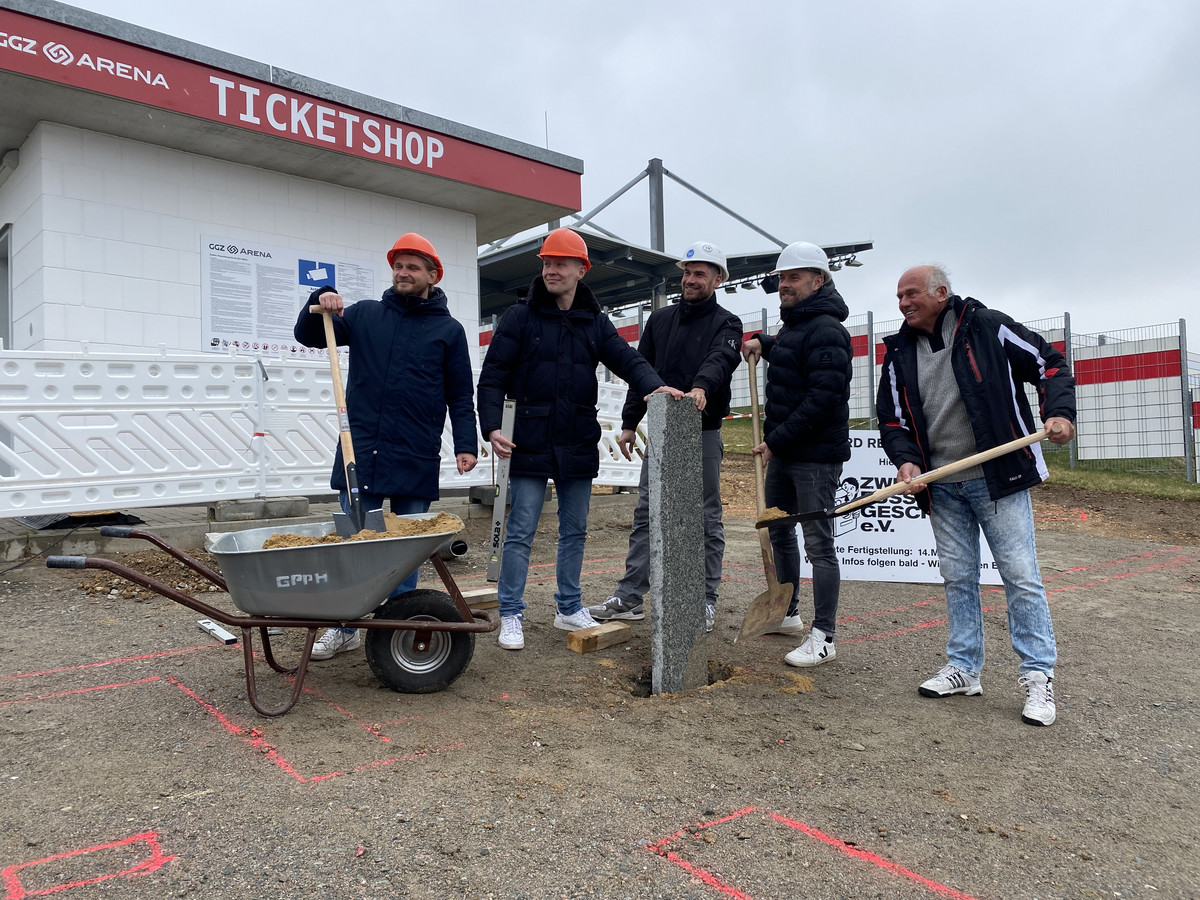 Am Stadion in Zwickau-Eckersbach sollen künftig alle Fußballer, die mindestens 150 Spiele für den FSV Zwickau und seine Vorgängervereine absolviert haben, geehrt werden. Dafür wird ein sogenanntes Legenden-Eck entstehen. Am Donnerstag war erster Spatenstich für das vereinshistorische Bauprojekt. Unterhalb vom Kassenhäuschen am Eingang zur Haupttribüne wurde symbolisch die erste Granit-Stele aufgestellt.