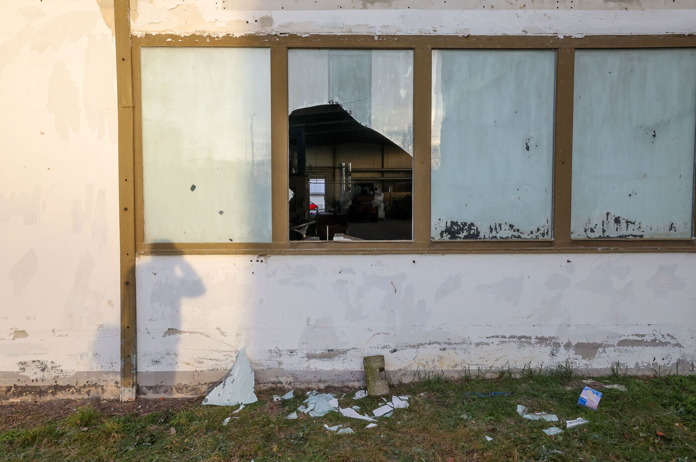 - Durch das Einschlagen einer Fensterscheibe verschafften sich die Täter Zugang zum Gebäude.