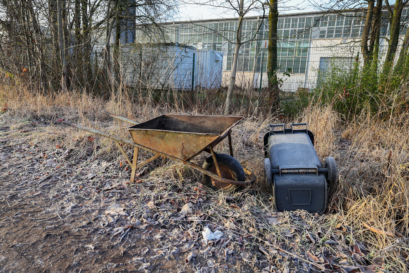 - Das Diebesgut wurde offenbar mit einer Schubkarre und einer Mülltonne nach draußen transportiert.