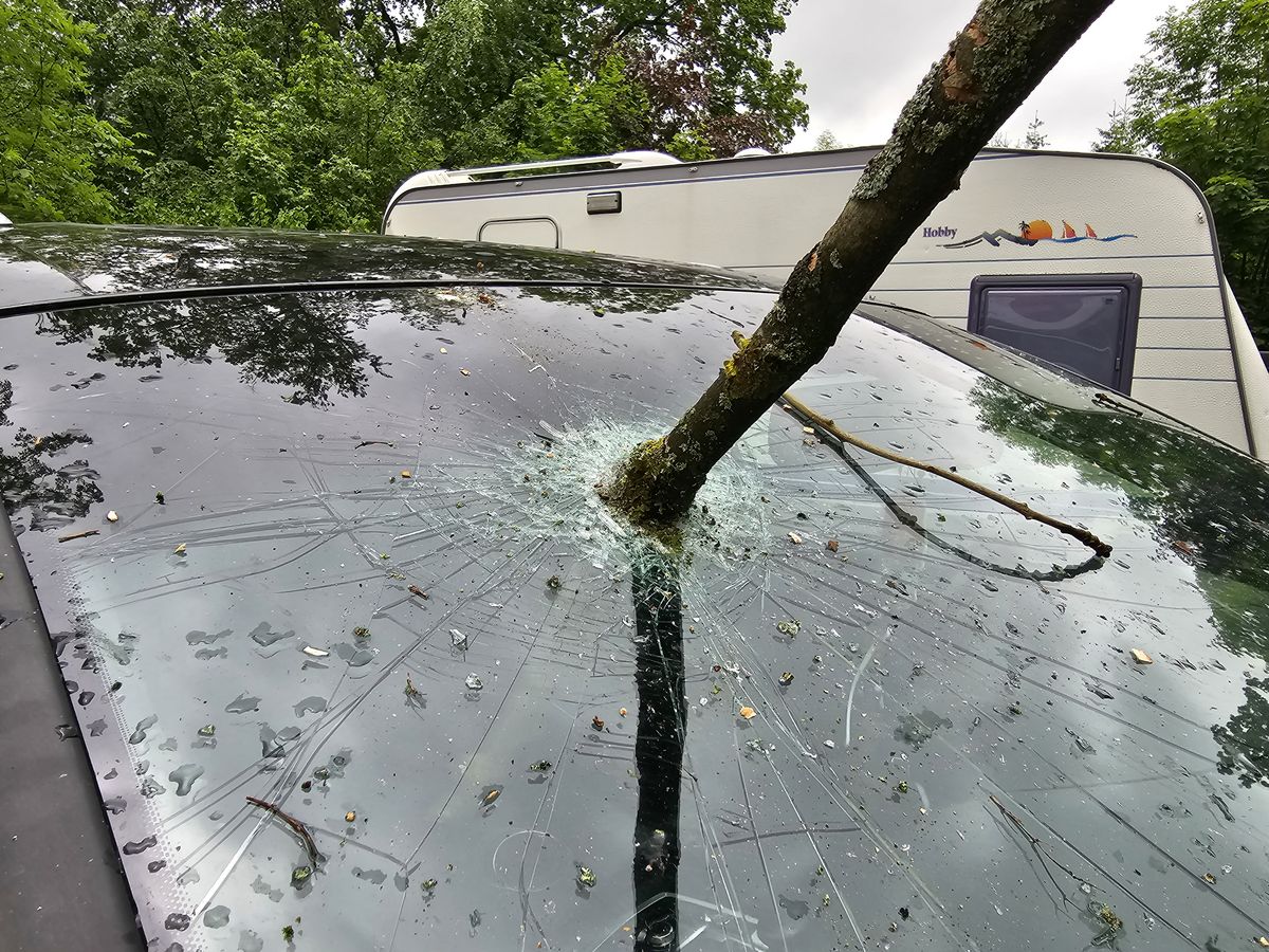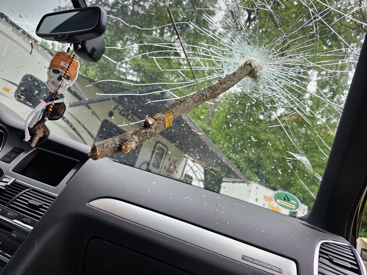 - Ein Ast bohrte sich durch die Frontscheibe eines Autos.