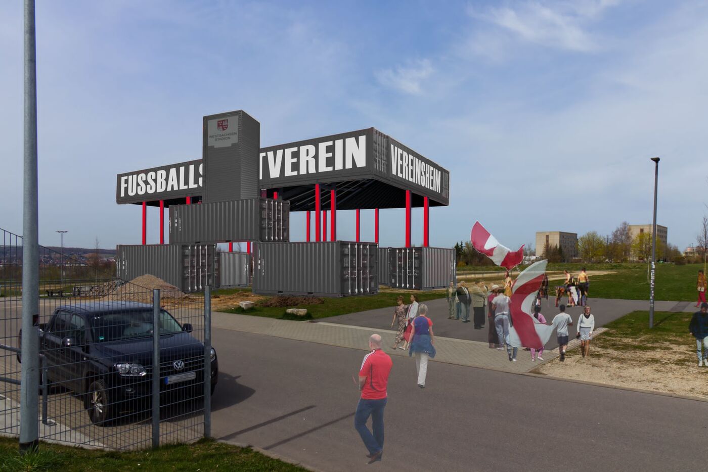 - Die Visualisierung des Containerbaus hat Ähnlichkeit mit dem altehrwürdigen Westsachsenstadion.