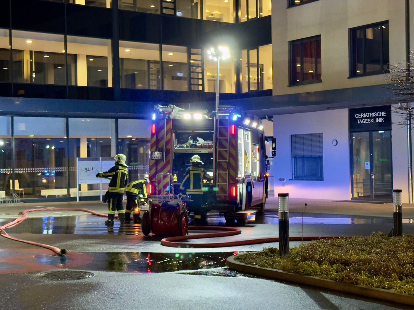 Mit Feuerlöschern gelang es dem Personal, eine Ausbreitung der Flammen zu verhindern, noch bevor Feuerwehren der Umgebung anrückten. Ein Trupp unter schwerem Atemschutz löschte den Brand vollständig. Das Patientenzimmer kann bis auf Weiteres nicht belegt werden. Es entstand ein Schaden von rund 10.000 Euro.