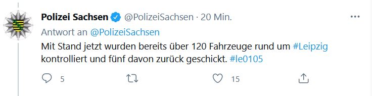 13:20 Uhr: Polizei setzt in Leipzig Demo-Verbote durch - Fahrzeugkontrollen