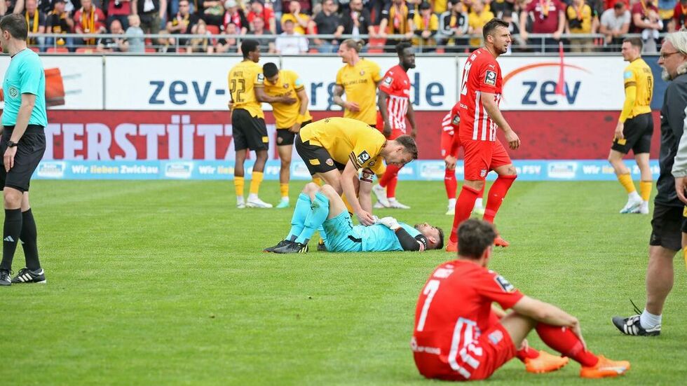Der Abstieg des FSV Zwickau ist durch die 0:1 Niederlage im Sachsen-Derby besiegelt worden. Vor 10 134 Zuschauern im erstmals in einem Punktspiel komplett ausverkauften GGZ-Stadion war Dresdens Niklas Hauptmann (34. Minute) Schütze des einzigen Treffers. Die Partie begann mit zwölfminütiger Verspätung, nachdem die Dresdner Fans ein Stadiondach besetzt und von dort aus eine Choreografie gestartet hatten.