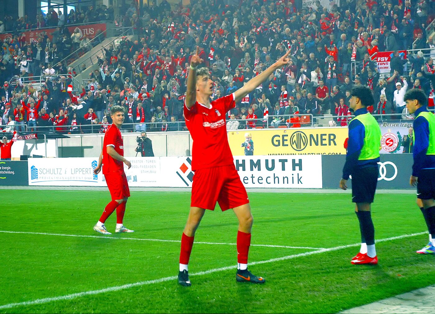 - Lukas Eixler feiert seinen Treffer vor dem E5.