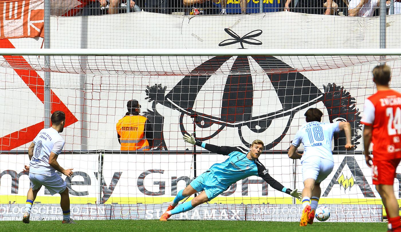 - Keeper Benjamin Leneis war beim Elfmeter in der richtigen Ecke, konnte aber das 0:1 nicht verhindern.