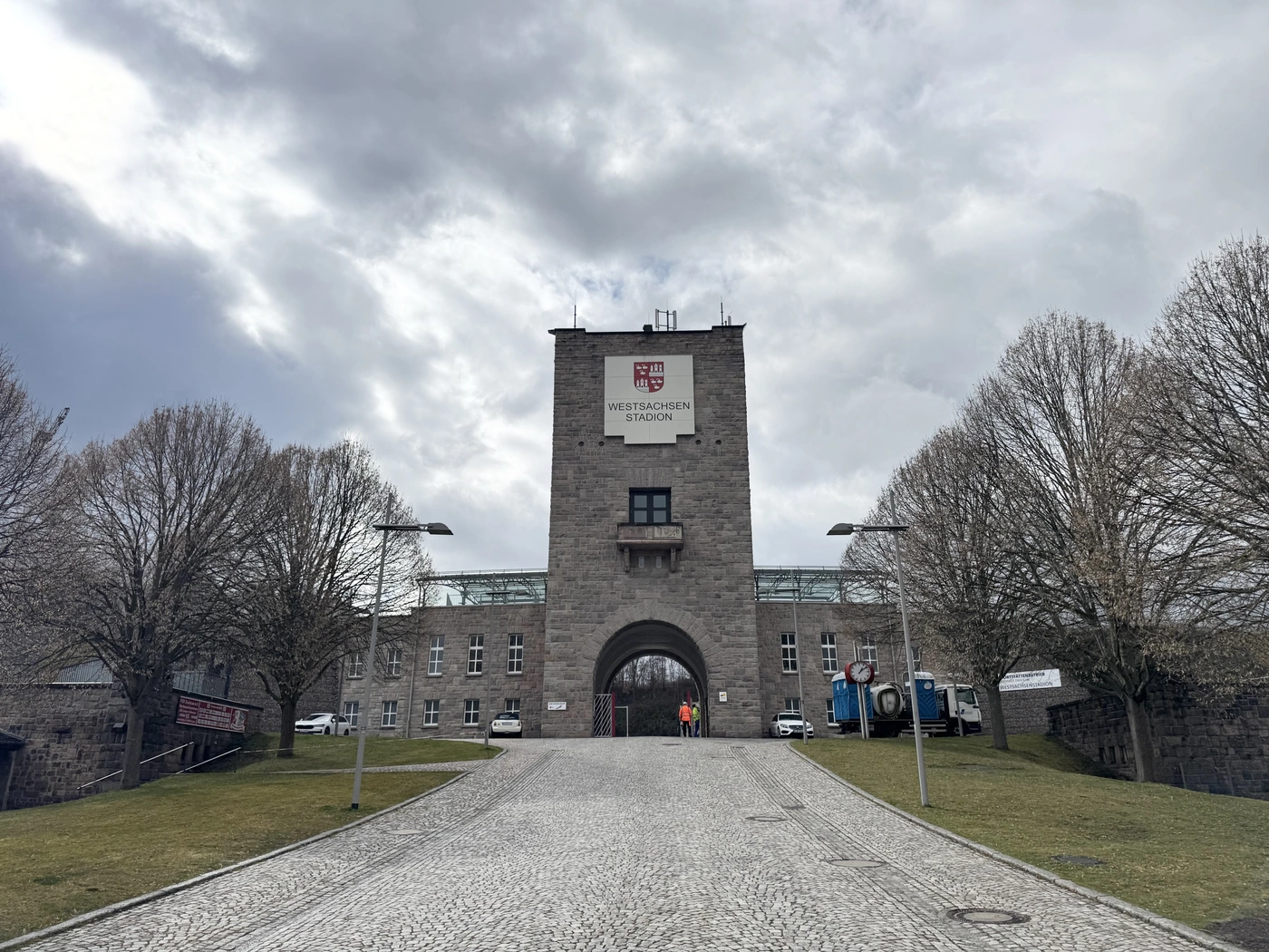 - Eingang und Turm vom Westsachsenstadion