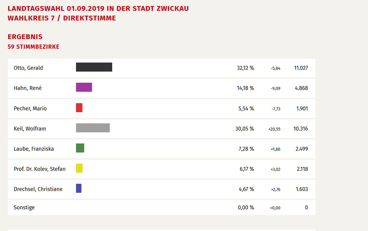 Die komplette Ergebnisübersicht des Wahlkreises 7 in Zwickau finden Sie hier.