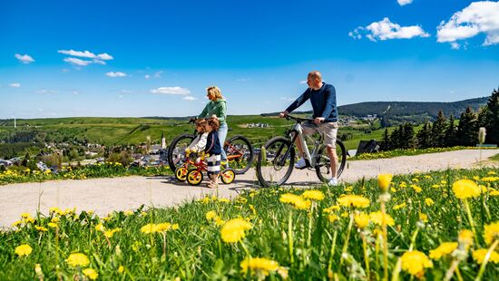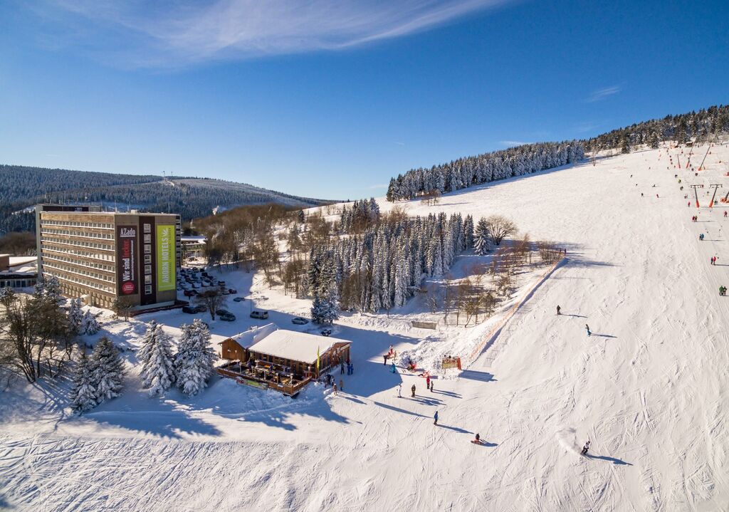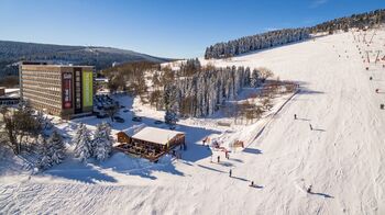 Oberhalb Deutschlands höchstgelegener Stadt Oberwiesenthal bietet das 3-Sterne Superior Aktiv- und Familienhotel alles, was das Herz von Naturliebhabern, Wander- und Wintersportfans höher schlagen lässt. Im Sommer lockt die Schönheit des Erzgebirges bei Nordic-Walking- oder Wandertouren auf dem mehr als 300km langen und gut ausgeschilderten Wegenetz – für Mountainbiker direkter Einstieg in den Stoneman-Miriquidi-Trail. Freunde des Wintersports erleben im familienfreundlichen Skigebiet FichtelbergKlinovec auf mehr als 27km Abfahrten und 95km Loipen ideale Bedingungen. Die Skipiste befindet sich direkt am Hotel.