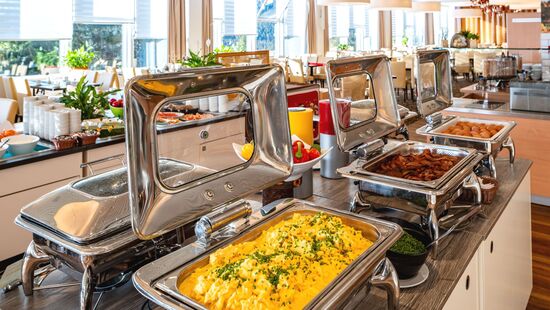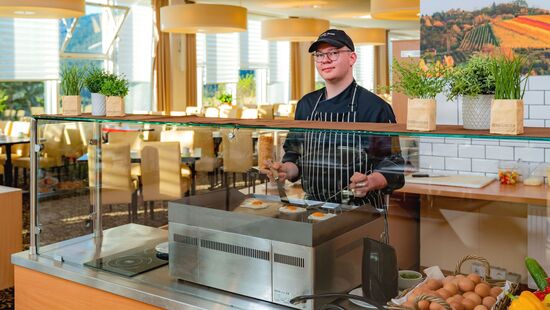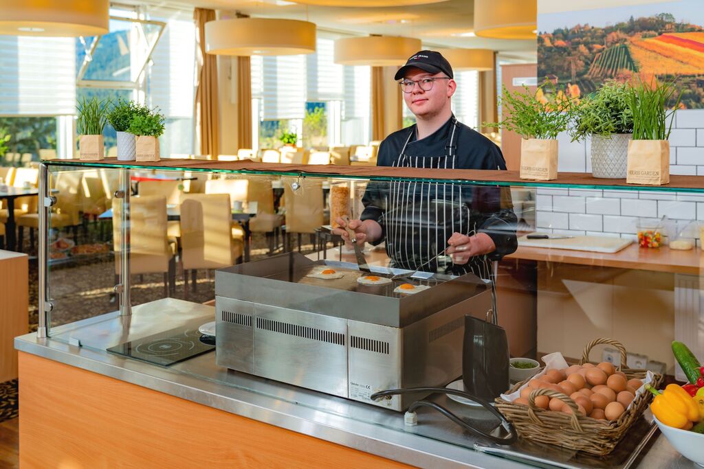 - Frühstücksbuffet mit Waffel- und Eierstation