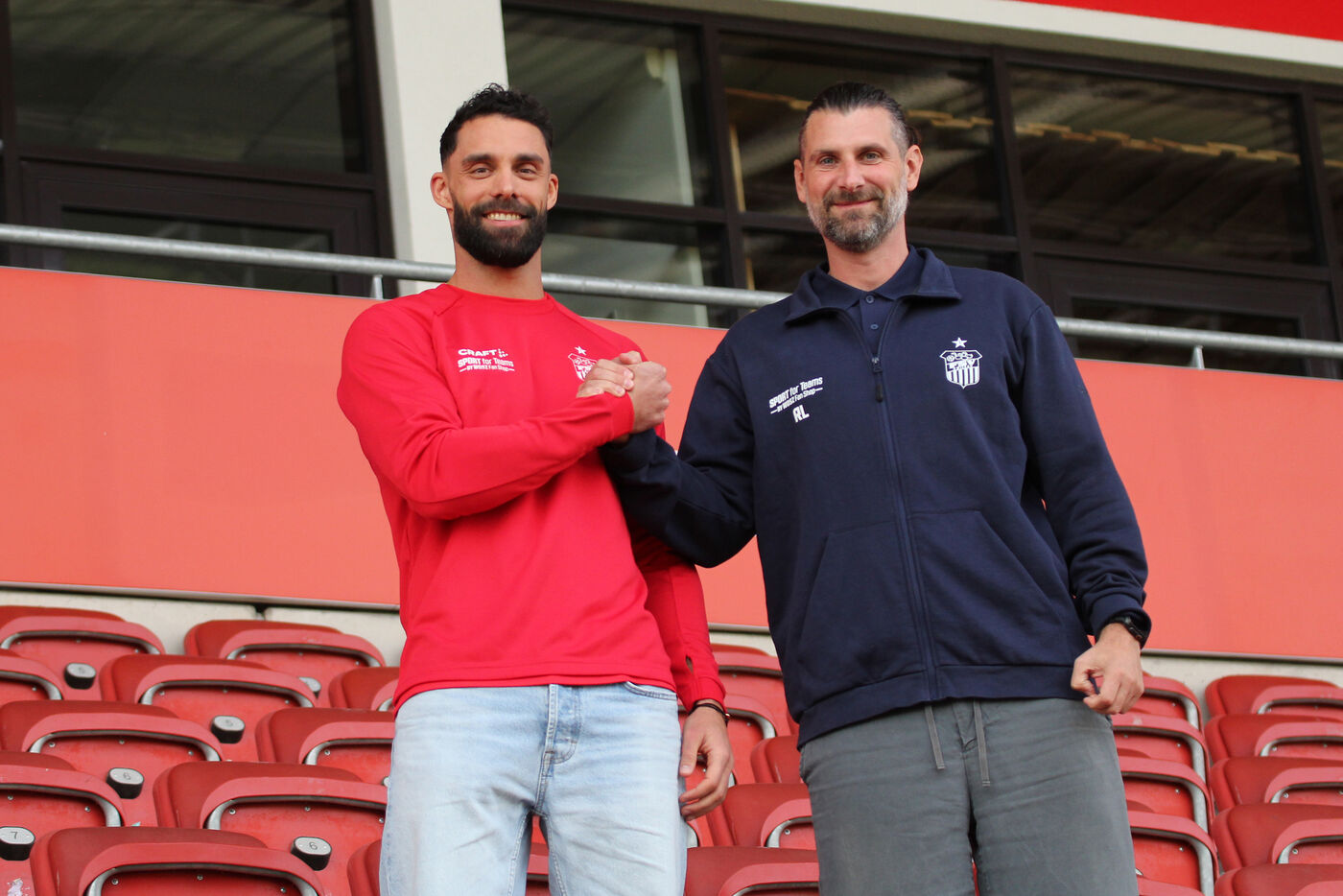 - Joshua Putze (l.) mit Sportdirektor Robin Lenk