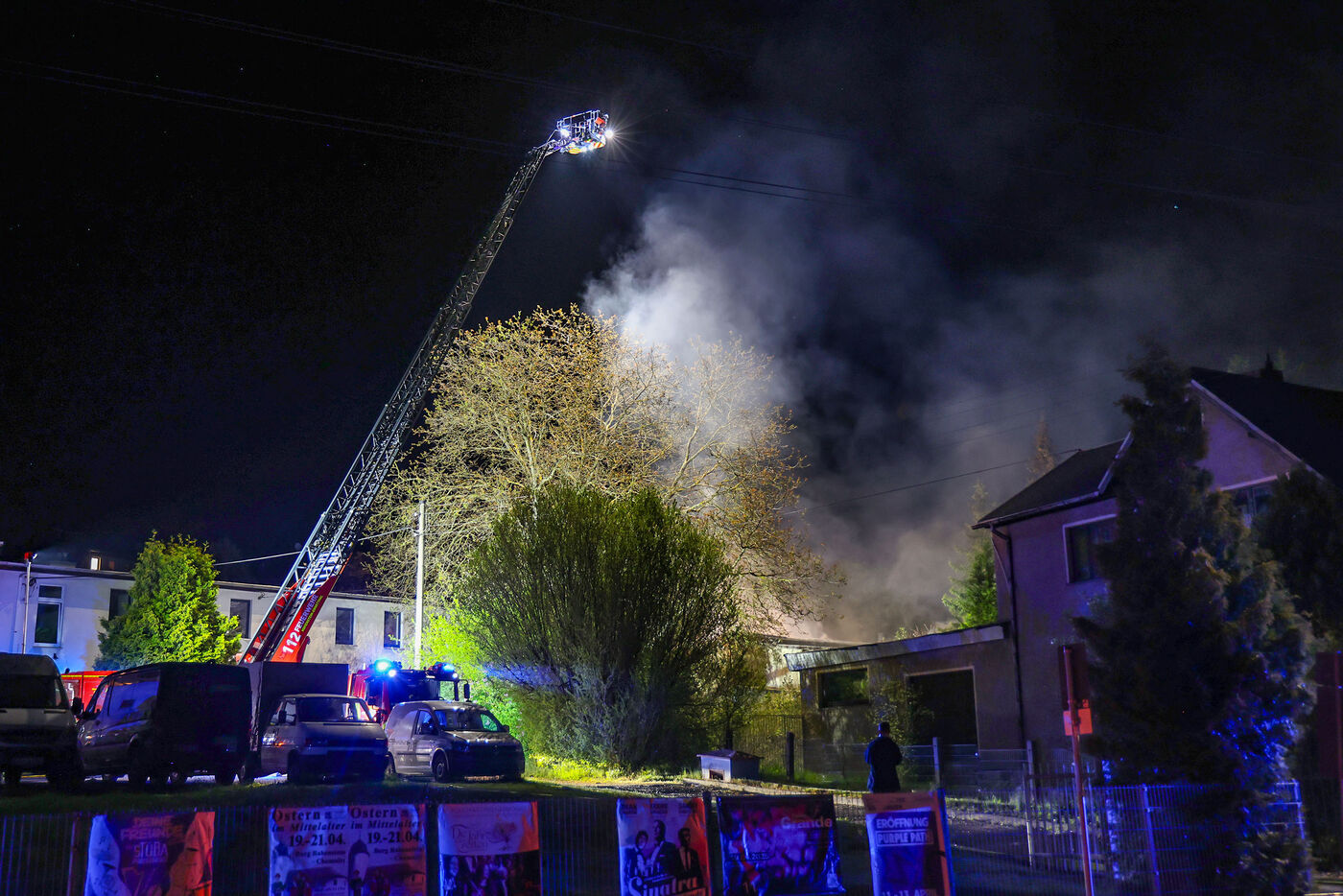 - Feuerwehren stehen auf der Käthe-Kollwitz-Straße in Wüstenbrand.