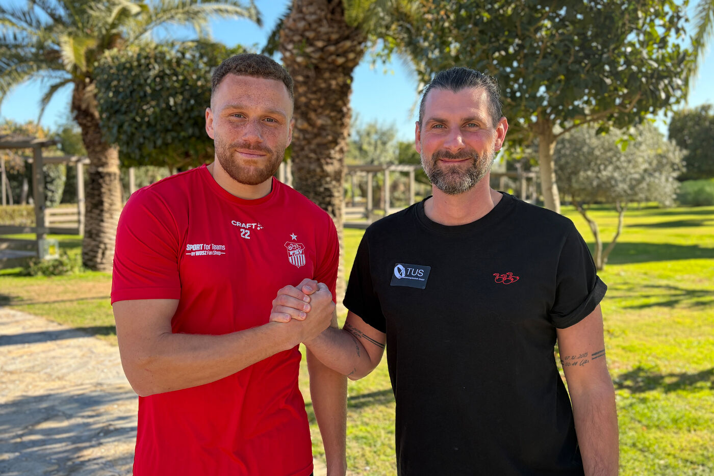 - Oliver Fobassam (li.) und Sportdirektor Robin Lenk im Trainingslager