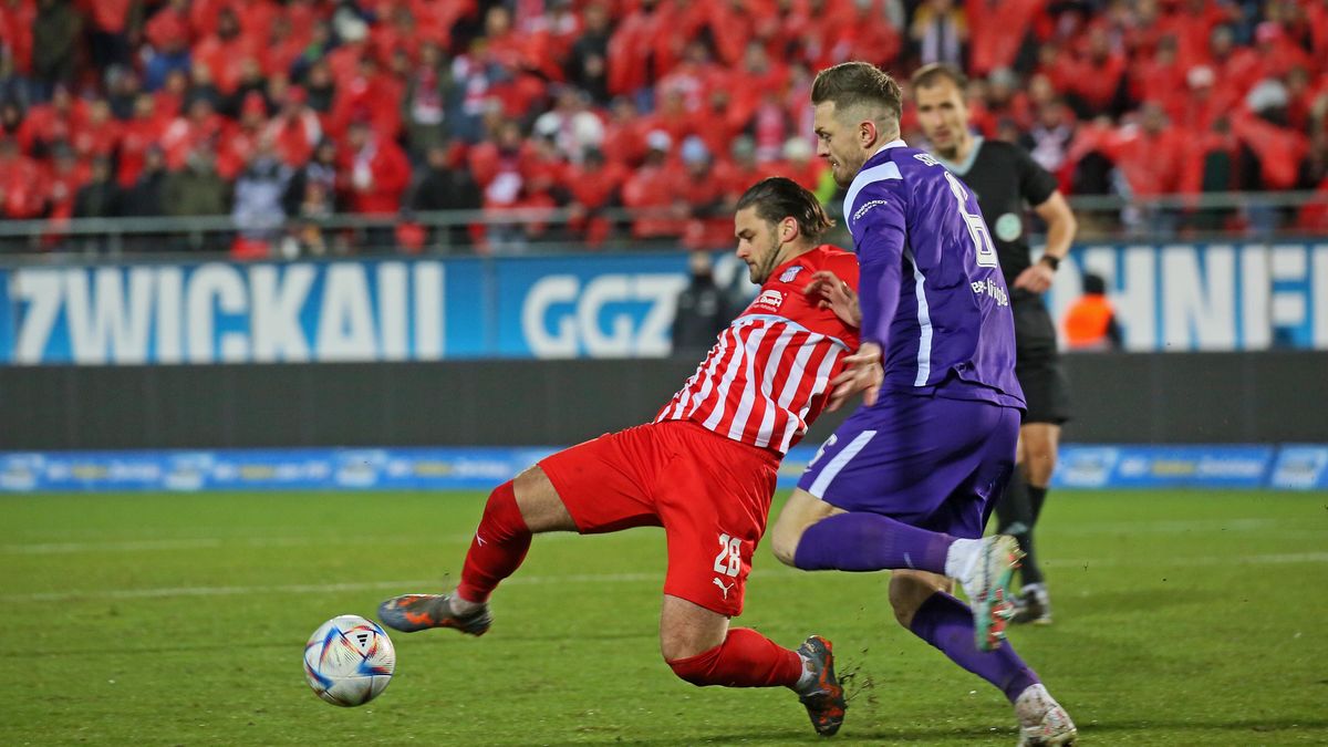 Der FSV hat das Westsachsenderby gegen Erzgebirge Aue verloren. Im ersten Spiel beider Vereine in Zwickau nach 13 Jahren setzte es am Dienstagabend eine 0:2-Niederlage. Dimitrij Nazarov hatte die Gäste nach 62 Minuten in Führung gebracht. Boris Tashchy erhöhte in der Nachspielzeit zum Endstand. Vor 8771 Zuschauern war es vor allem im ersten Abschnitt das erwartete emotionale und rassige Duell.