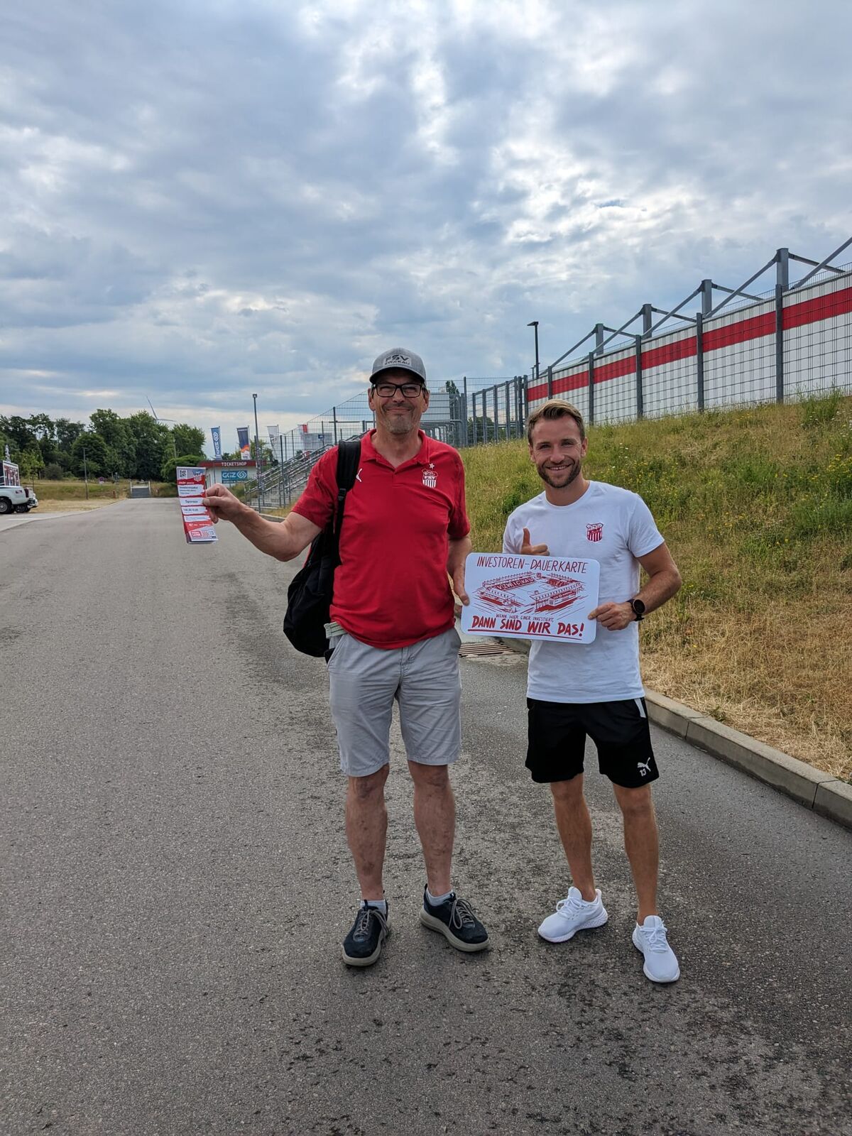 - Der erste "Dauerkarten-Investor" Thomas Drescher und FSV-Spieler Mike Könnecke.