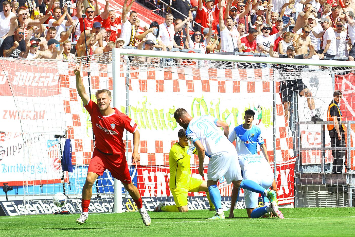 - Zwickaus Luis Klein jubelt über das Tor des Tages in Chemnitz
