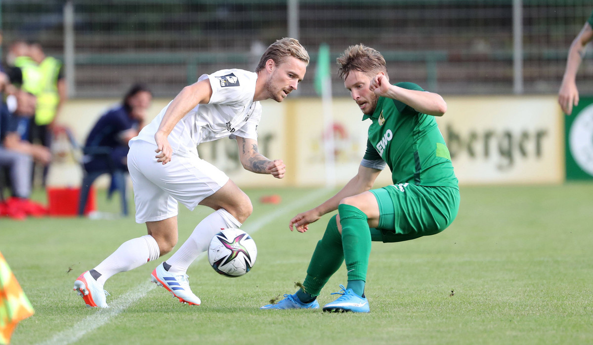 - Nils Butzen (li.) im Zweikampf mit Florian Brügmann bei einem Test gegen Chemie in der Vorbereitung.