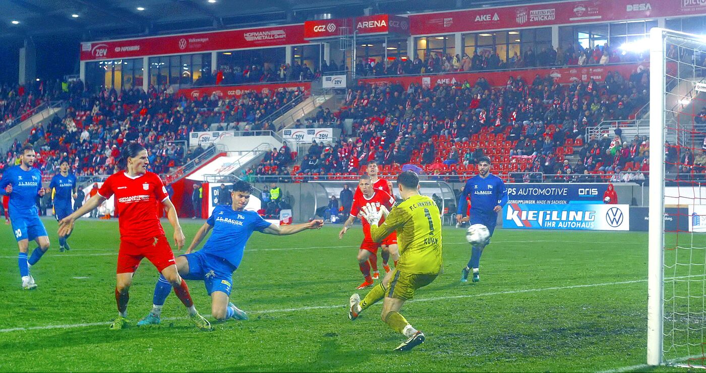 Kurz nach der Halbzeit kassierten die Zwickauer überraschend den Ausgleich. Nach einer Ecke verlor Mike Könnecke als letzter Mann den Ball; Serhat Polat marschierte allein über den halben Platz und überwand auch Lucas Hiemann. Doch das war schnell vergessen – in der 60. Minute setzte sich Jahn Herrmann im Strafraum durch und brachte sein Team wieder in Führung.