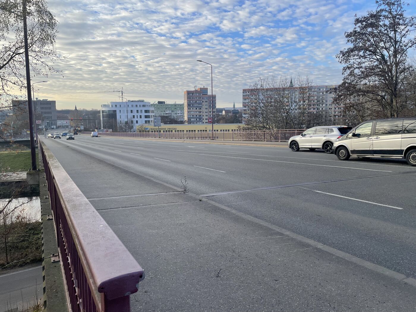 Die Glück-auf-Brücke über die Zwickauer Mulde ist für schwere Last gesperrt – 40 Tonnen sind das Maximale. Und es sind weitere Untersuchungen nötig. Der Finanzausschuss hat in dieser Woche zusätzliche 250.000 Euro bewilligt. „Zunächst“ steht im Beschlusstext. Schlussfolgern kann man daraus nichts. Tiefbauamtsleiter Thomas Pühn sagte im Ausschuss: „Wir können uns nicht in Sicherheit wiegen, müssen aber auch nicht aufgeregt sein.“
