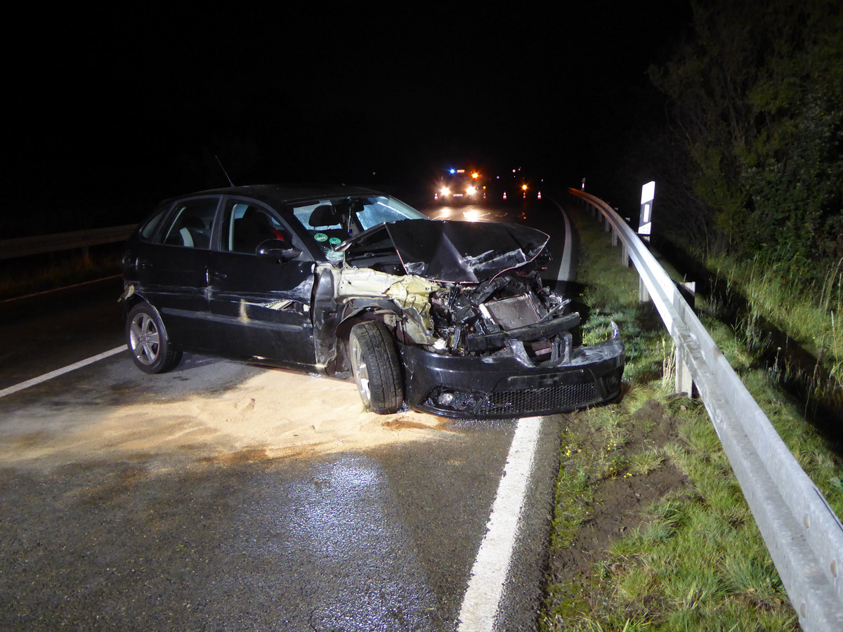 Alle drei Insassen des Seats kamen ins Krankenhaus, wurden aber kurz darauf wieder entlassen, weil sie sich nicht verletzt hatten. Der Seat ist Schrott: Am Wagen und an der Leitplanke entstand Schaden von etwa 8.000 Euro.