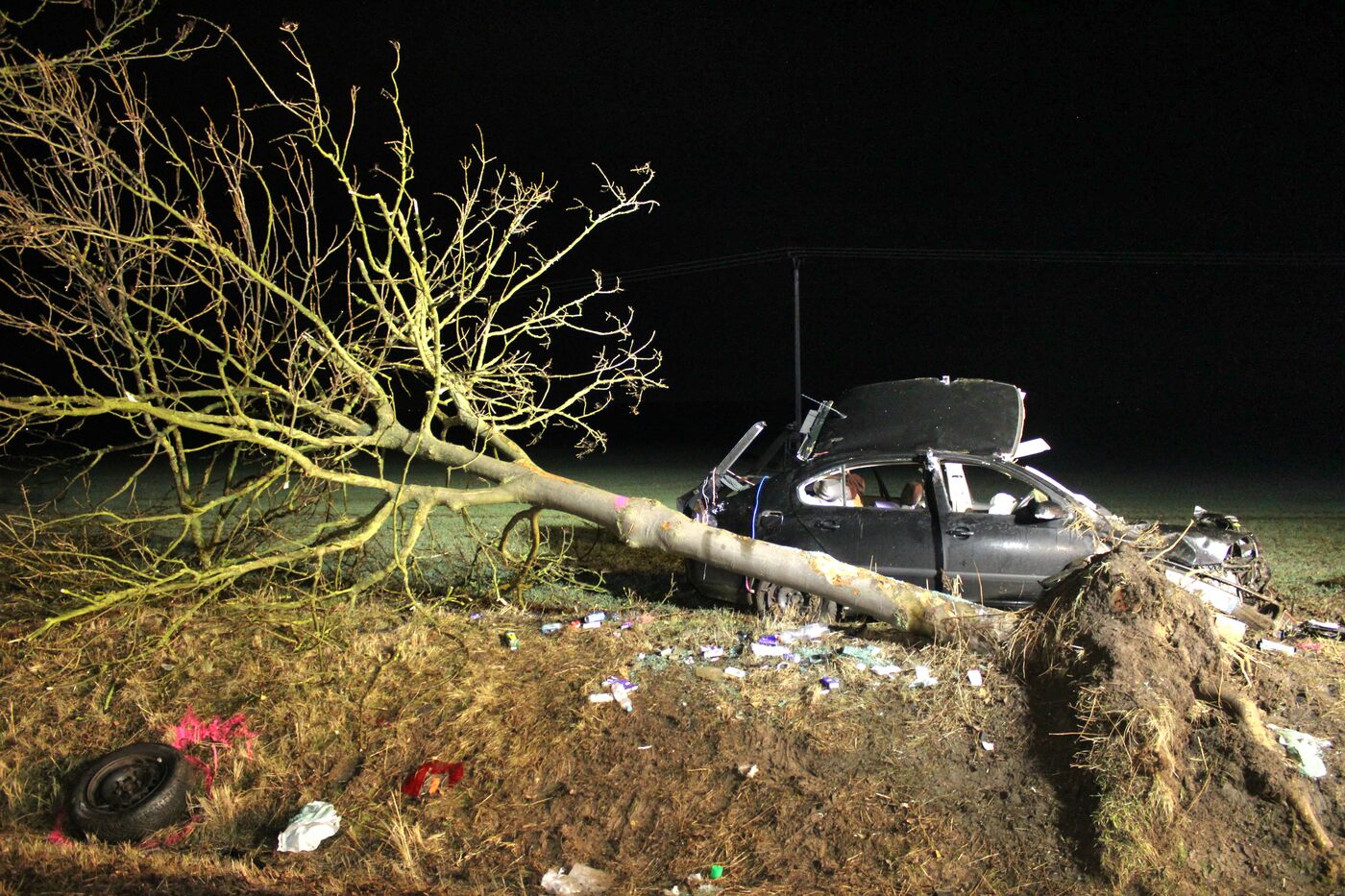 Hefiger Unfall - Baum entwurzelt, Auto halbiert