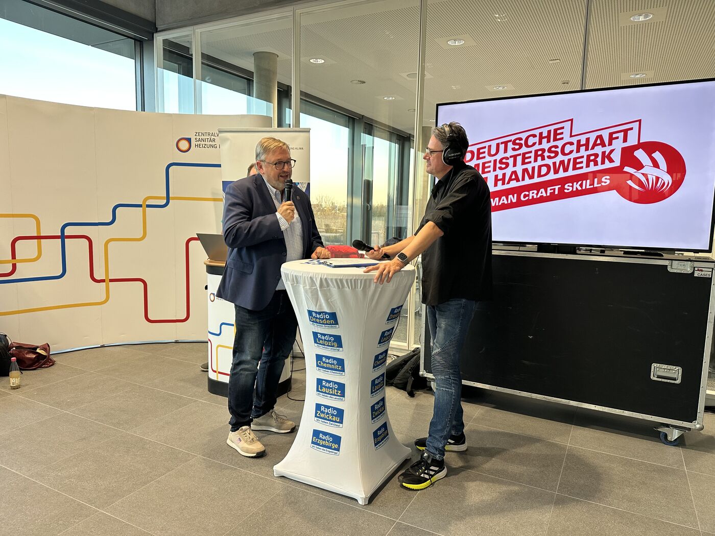 - Radio-Moderator Roman Knoblauch im Gespräch mit Hans-Werner Eschrich, Vorstand Bildung und Berufsförderung des ZVSHK.