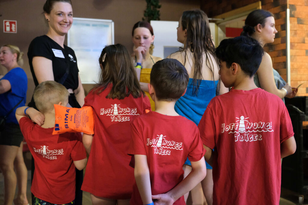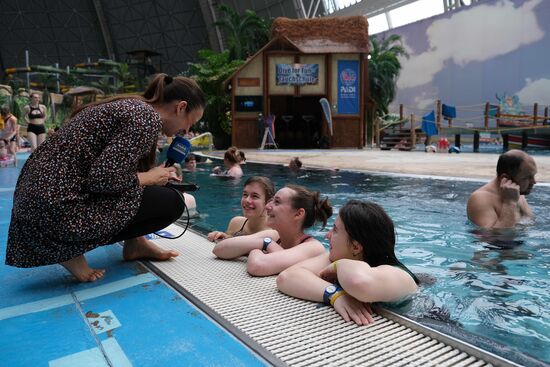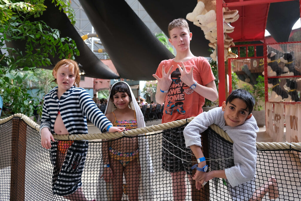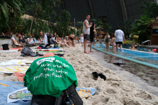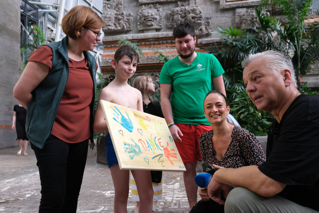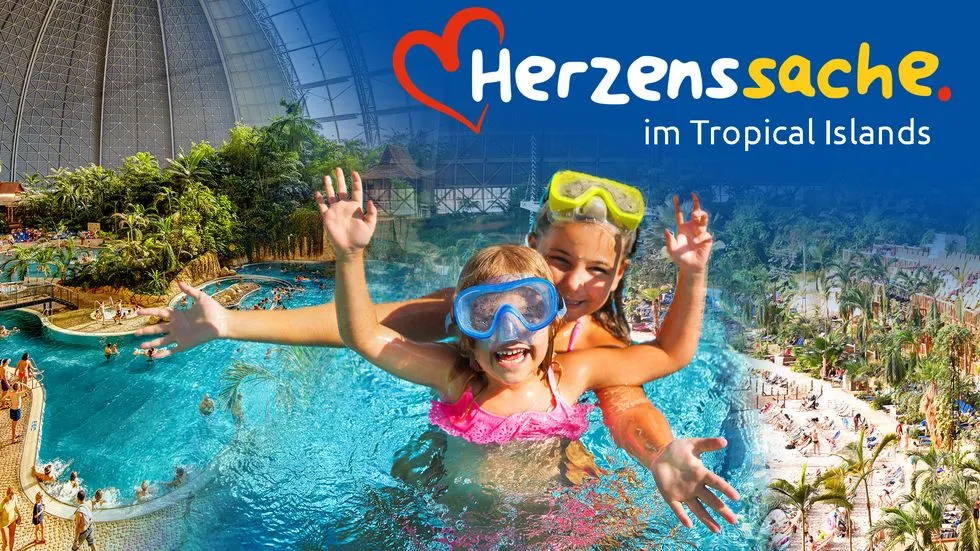 Kim Schäfer vom Tropical Islands hatte die Kinder eingeladen und das Wetter war wie gemacht, um vom Süden zu träumen. Draußen gabs Nieselregen und drinnen tummelten sich die Kinder bei 28 Grad Wassertemperatur.