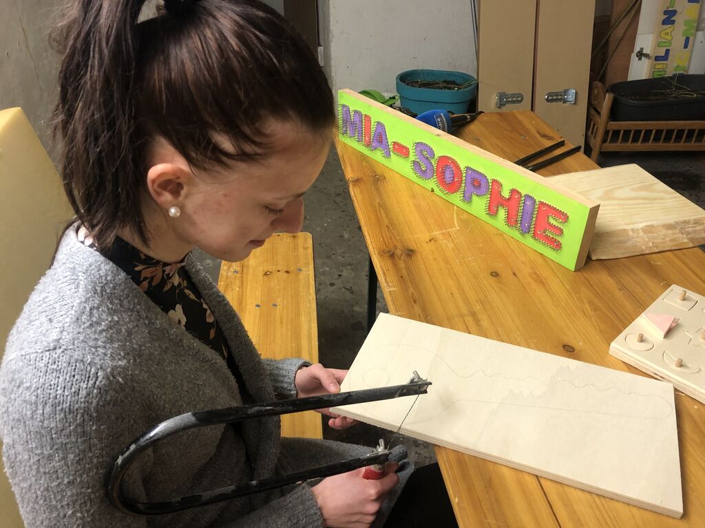 Ziel ist es, die jungen Mütter zu befähigen, ihr Leben künftig mit ihrem Kind selbständig zu gestalten. Durch vielfältige Angebote wird eine tragfähige Mutter-Kind-Beziehung gefördert. Das wird auch in dem „Holzkunst-Projekt“ mit Katja Morenz von „Knopfs Holzwerkstube“ deutlich. Die jungen Frauen fertigen zum Beispiel bunte Namensschilder für ihre Babys. Während des Kurses wird viel geredet. Die Mütter können mal abschalten vom Alltag und sind im Anschluss auch richtig stolz auf ihre kleinen Kunstwerke.
