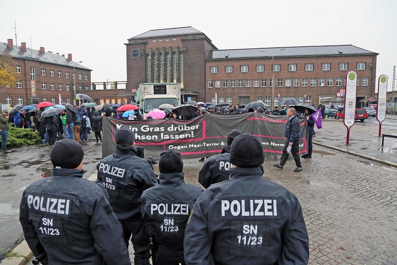 Fünf Jahre nach dem Auffliegen des NSU-Terrortrios haben am Samstag in Zwickau mehrere hundert Menschen gegen Rassismus demonstriert. Die Bundespolizei sprach von rund 450 Teilnehmern.