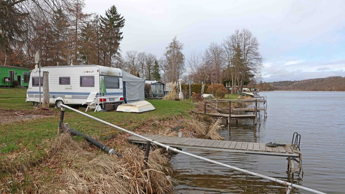 Ein Viertel des Campingplatzes ist noch nicht wieder nutzbar, nachdem im Sommer 2022 ein Dutzend Wohnwagen abgefackelt war. Die Bodensanierung ist Aufgabe der Gemeinde Langenbernsdorf.