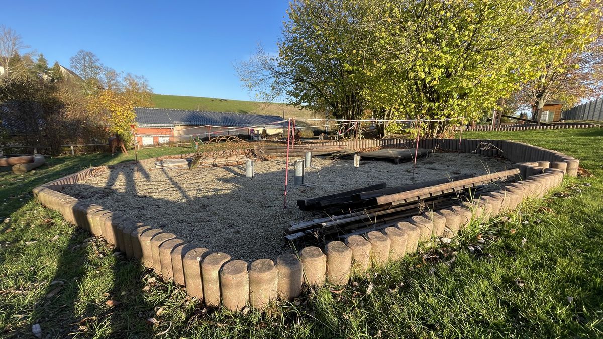 - Aktuell können die Kinder nur die Wiese im Außenbereich der Kita nutzen. Der alte Spielturm musste abgerissen werden.