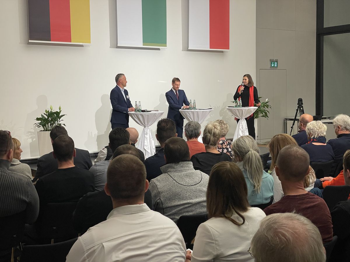 - Vor rund 200 Menschen sprach Ministerpräsident Michael Kretschmer (v.m.) am Montagabend im Zwickauer Rathaus.
