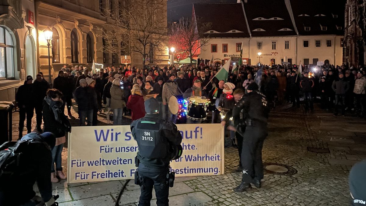 Die Polizei sicherte beide Veranstaltungen am Abend mit rund 100 Einsatzkräften ab. Es blieb ruhig.