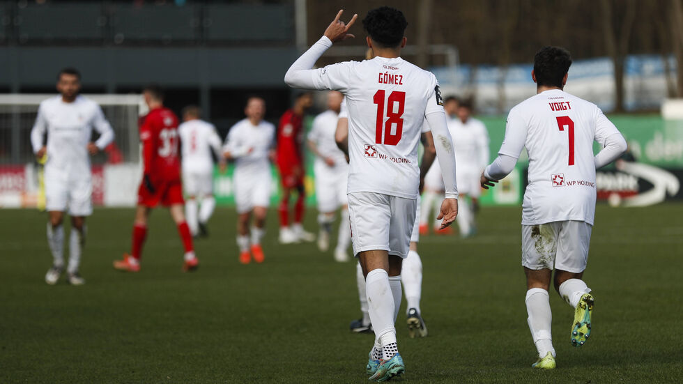 Thielemann nahm im Vergleich zum 2:1-Sieg gegen den SC Verl am vergangenen Spieltag nur einen Wechsel vor und gab Robin Ziegele den Vorzug vor Noel Eichinger. Die Gastgeber waren in der ersten Halbzeit die aktivere Mannschaft, aber völlig harmlos vor dem Zwickauer Tor. Die Gäste verzeichneten zwei große Chancen, von denen sie die zweite Möglichkeit kurz vor dem Pausentee nutzten. Ein langer Ball von Jan Löhmannsröben aus der eigenen Hälfte erreichte am gegnerischen Strafraum Dominic Baumann, der den Ball zu Gomez weiterköpfte. Der 21 Jahre alte US-Amerikaner vollendete aus rund 14 Metern ins lange Eck und ließ Kölns Schlussmann Ben Voll bei seinem fünften Saisontreffer keine Chance.