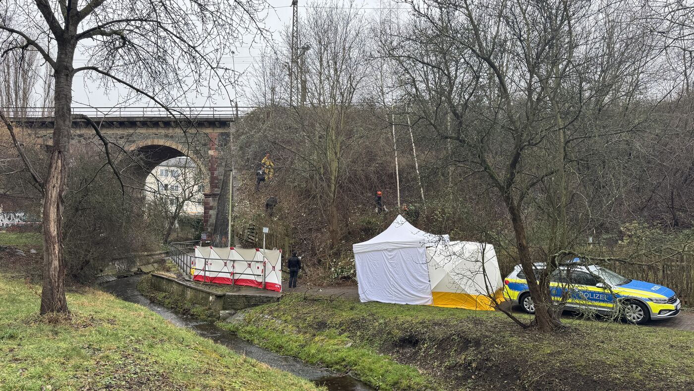 Auch am Dienstag waren Beamte der Kriminalpolizei am Fundort im Einsatz. Sie durchkämmten das unwegsame Gelände am Bahndamm, fanden aber nichts, wie eine Sprecherin auf Nachfrage mitteilte. Wer die Person war und wie sie zu Tode gekommen ist, sei noch völlig unklar.