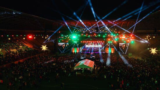 Erleben Sie großartige Solisten sowie stimmungsvolle Weihnachtslieder, die von mehr als 20.000 Zuschauerinnen und Zuschauern intoniert werden – das ist das besondere Flair des Großen Adventskonzertes im Rudolf-Harbig-Stadion.
