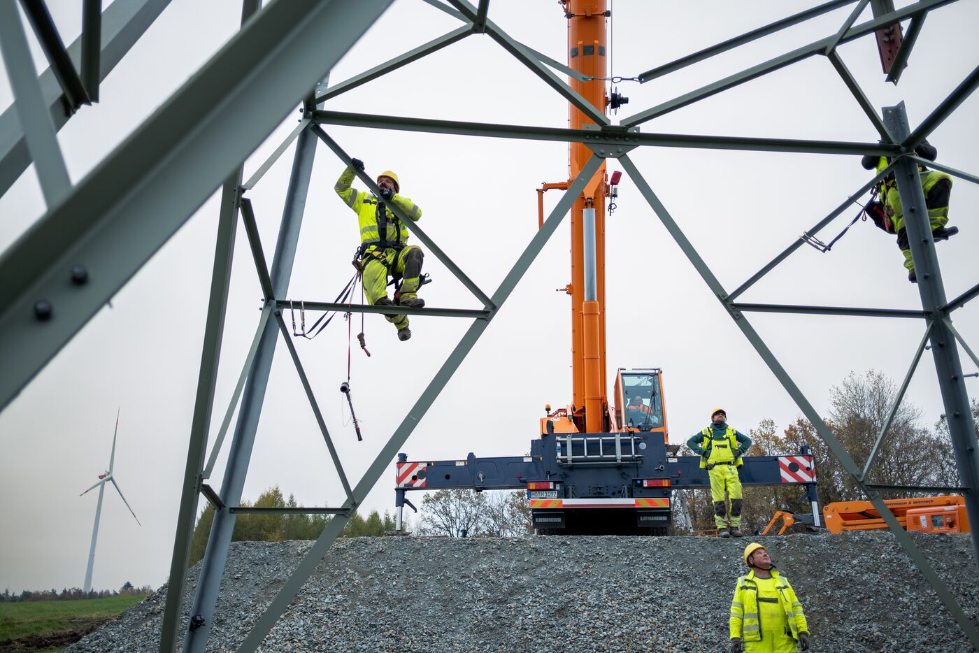 - Arbeit an einem von rund 60 neuen Masten