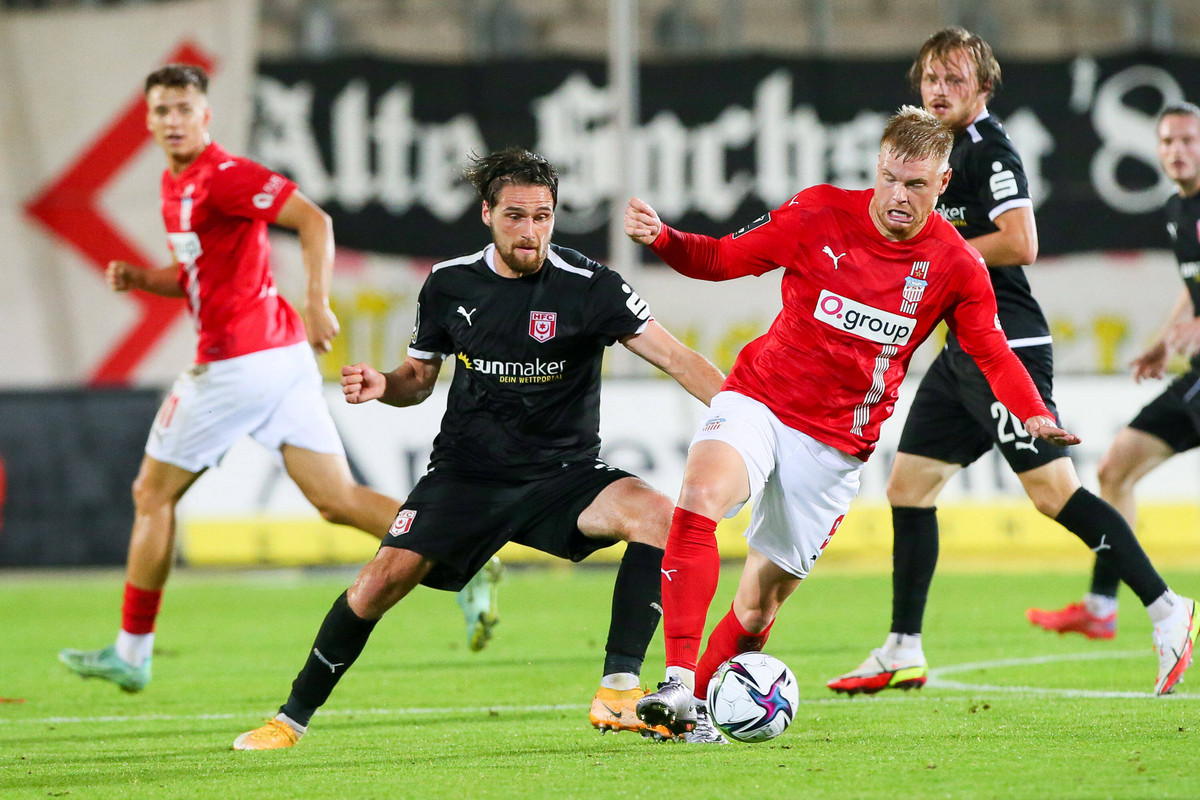 - Lars Lokotsch - hier im Zweikampf mit Jonas Nietfeld vom Halleschen FC.