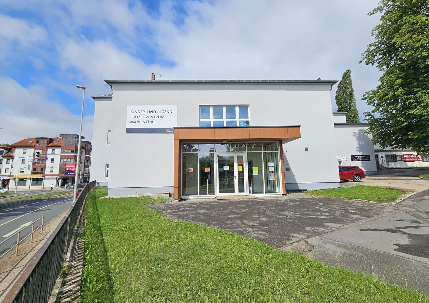 - Die frische Fassade lässt vermuten, dass das Freizeitzentrum schon fertig saniert ist.
