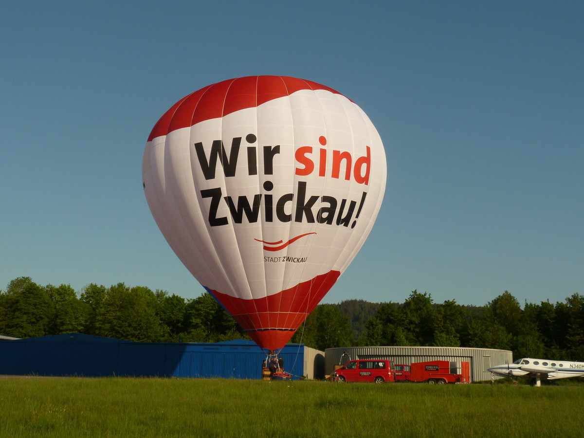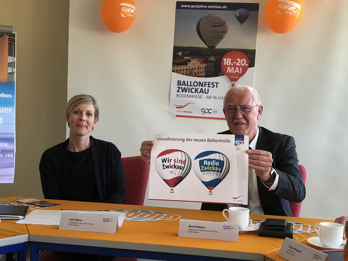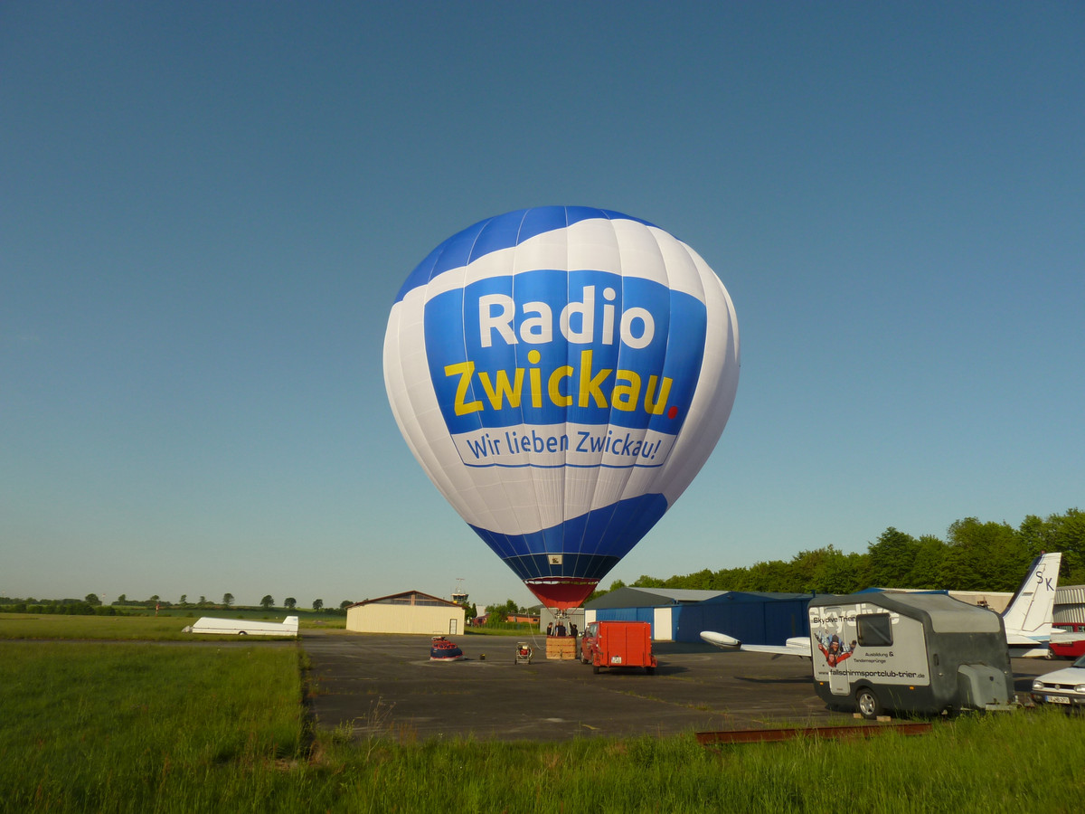 Radio Zwickau teilt sich mit der Stadt Zwickau einen Heißluftballon. Auf der einen Seite der Hülle ist das Radio-Logo zu sehen, auf der anderen wirbt die Stadt mit dem Slogan "Wir sind Zwickau". Am Montag wurde der Entwurf bei Globus, dem Ballonfestsponsor, der Öffentlichkeit präsentiert. Live zu sehen ist der Ballon das erste Mal zum Ballonfest über Pfingsten (18. bis 20. Mai) auf der Rosenwiese neben dem Platz der Völkerfreundschaft. Dann werden 15 Teams in die Luft gehen. Die Mitfahrgelegenheiten sind lange ausgebucht. Aber es gibt eine abgespeckte Alternative: Ein Ballon wird an einem Kran 50 Meter in die Höhe gezogen für einen schönen Blick über Zwickau. Eine Fahrt kostet 4 Euro. Höhepunkt an jedem Abend des Ballonfestes wird das Ballonglühen um 22 Uhr sein. Ab jetzt heißt es, Daumen drücken für gutes Wetter. Andernfalls fällt das Ballonfest aus.