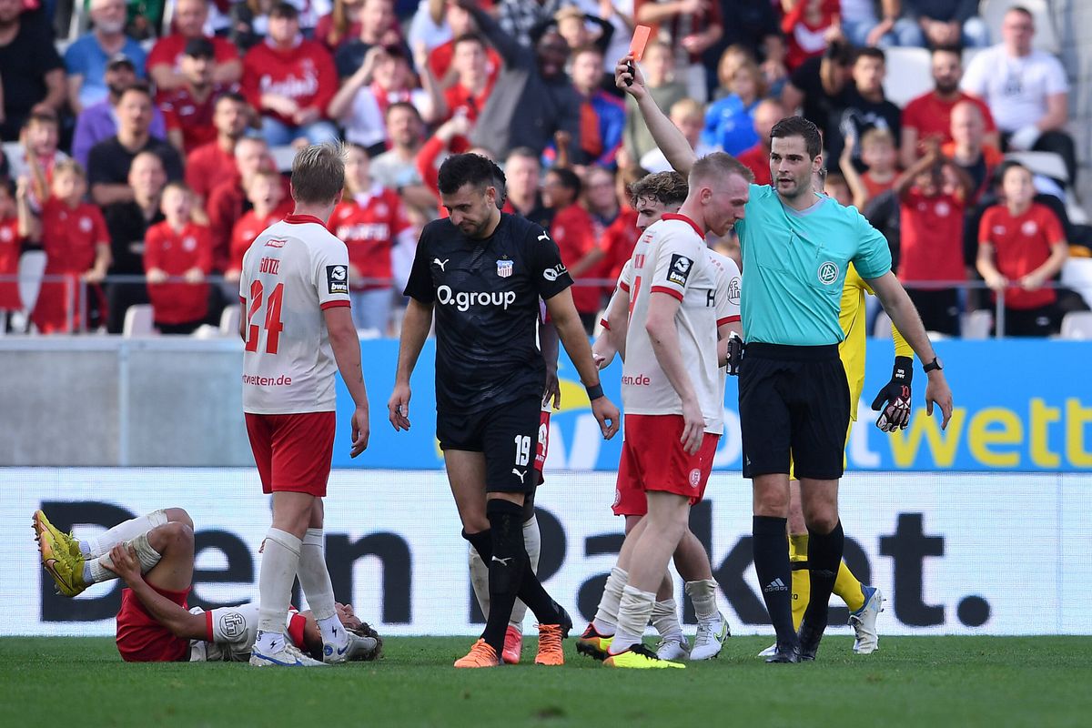 - Hier sieht Frick die rote Karte von Schiri Burda.