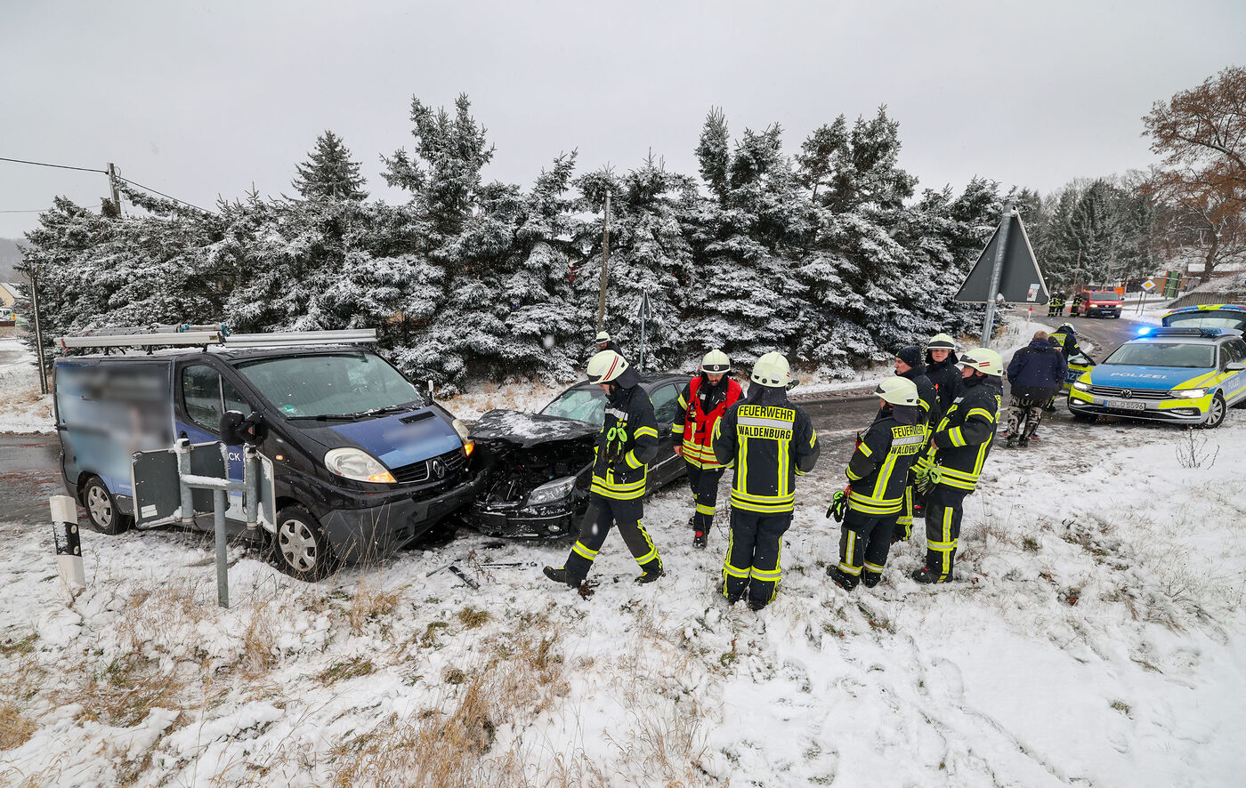Auf der B180 kurz nach dem Ortseingang Waldenburg hat sich am Silvesternachmittag ein schwerer Verkehrsunfall ereignet. Wie unser Reporter vor Ort berichtet, war eine Mercedes-Fahrerin in einer Kurve in den Gegenverkehr geraten und frontal mit einem Kleinbus zusammengestoßen.