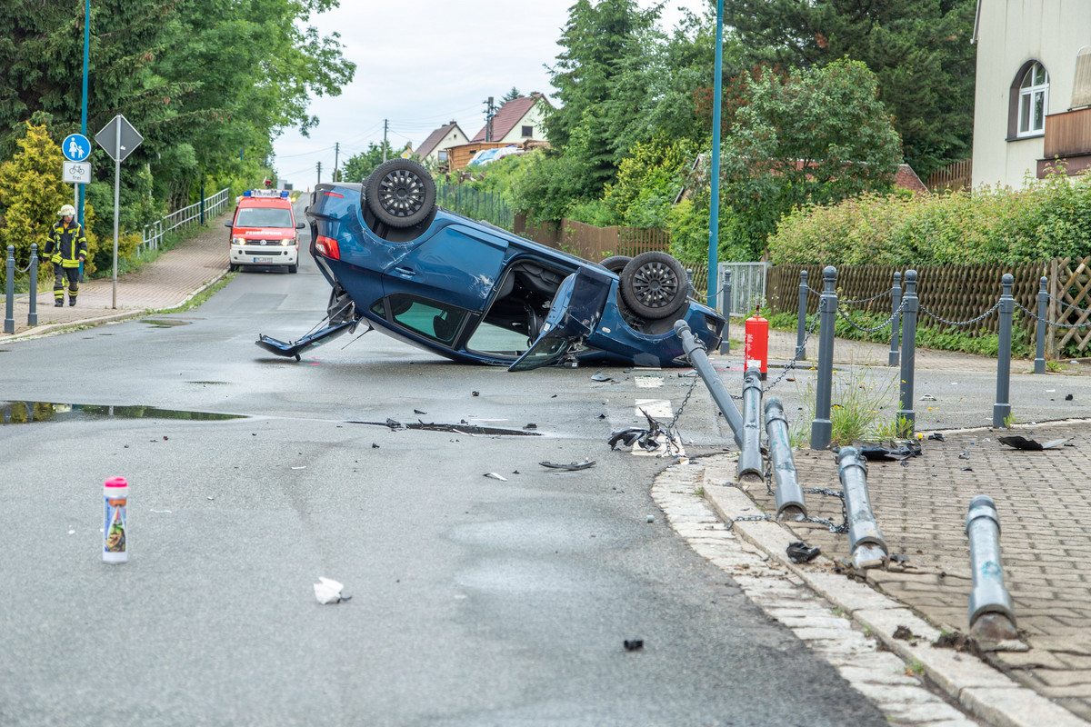 Schwerer Unfall in Oelsnitz - Auto landet auf Dach