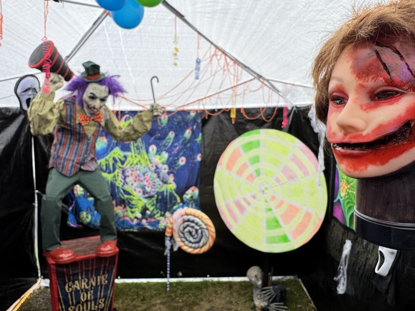 Dort haben die beiden Halloween-Fans Gruselzelte aufgestellt, die mit mechanischen Puppen ausgestattet sind. Dort trifft man auf Horrorgestalten aus bekannten Gruselfilmen wie zum Beispiel den Clown „Pennywise“ aus „Es“ oder Michael Meyers aus „Halloween“. Um den Horrortrip für Besucher perfekt zu machen, bewegen sich die Figuren auch noch und machen Geräusche. „Wir fangen im Januar schon an, die Puppen selbst zu bauen und brauchen etwa drei Monate für den Aufbau der Zelte,“ berichtet Roy Degenhardt.