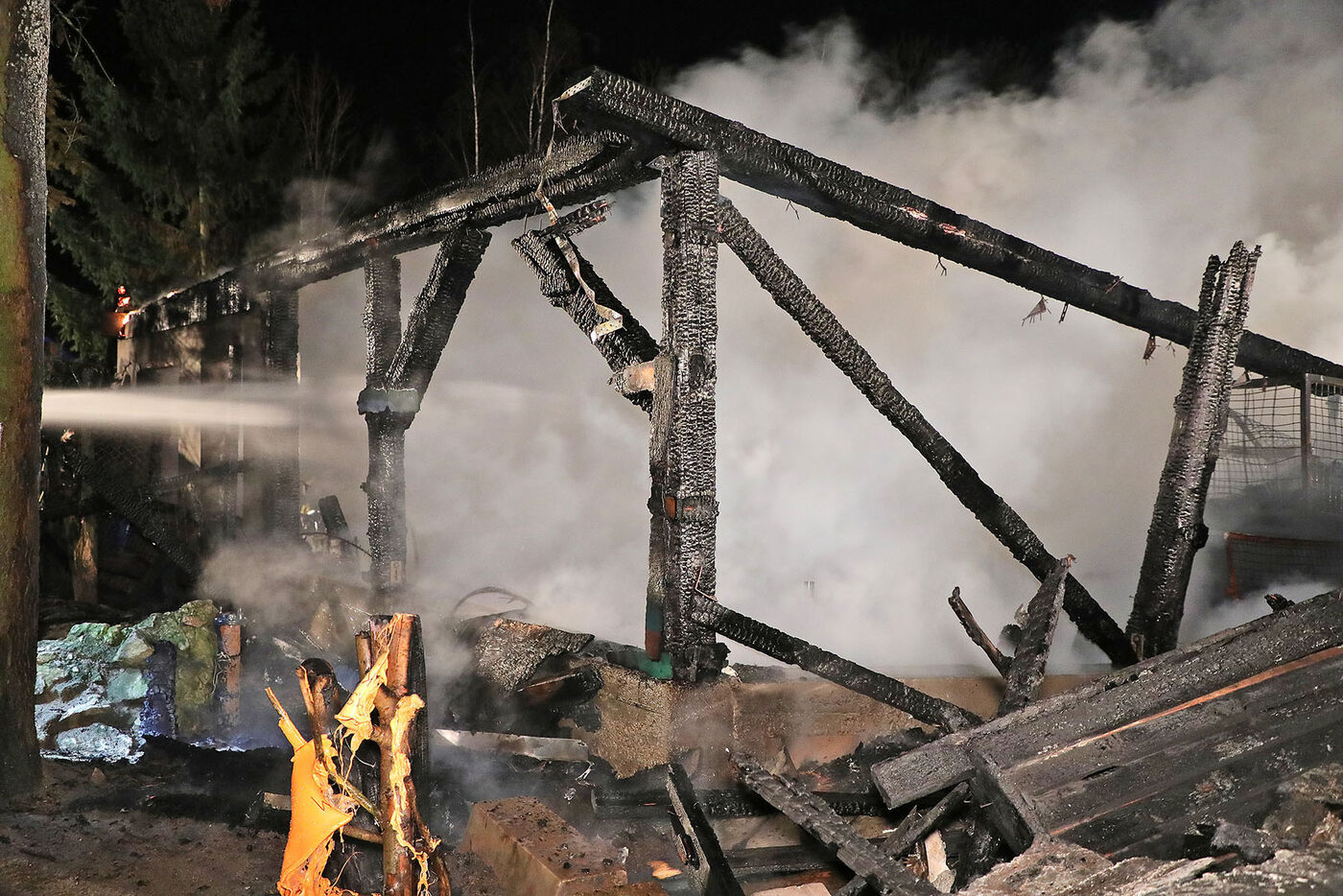 Während mehr als 100 Feuerwehrkräfte durch die Dunkelheit eilten, spielten sich auf dem Gelände dramatische Szenen ab. Die Angst galt nicht dem Holz und den Balken – sondern den Lebewesen.