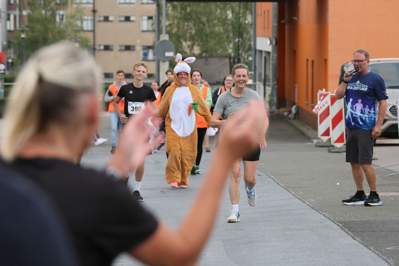- Läufer im Hasenkostüm. Rechts: Organisator Andreas Hahn.