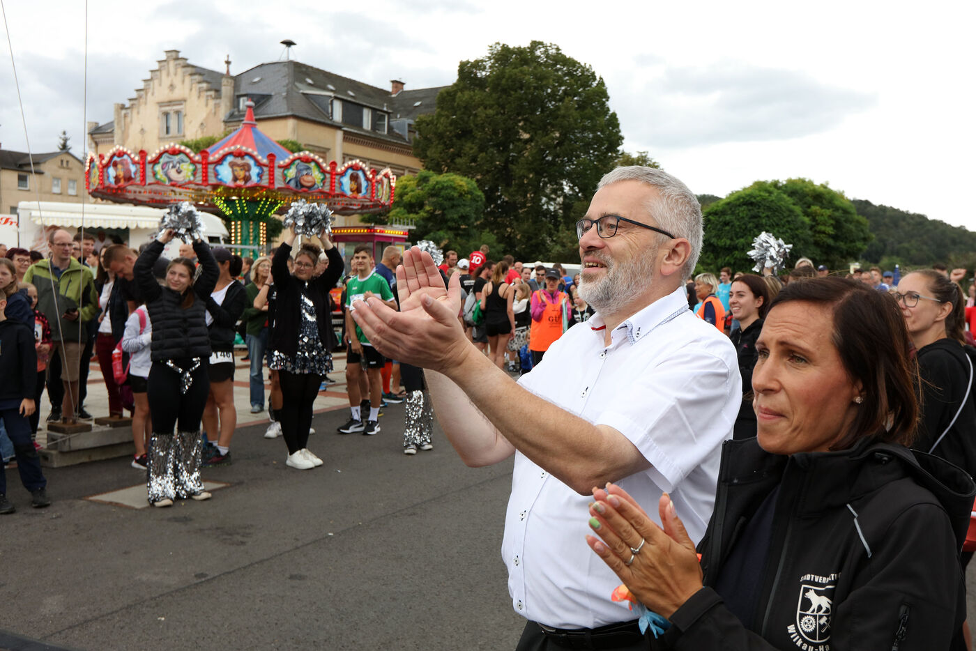 - Bürgermeister Stefan Feustel feuert die Läufer an.