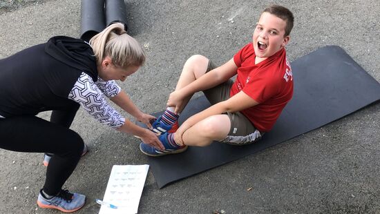 Fitnesstrainerin Cindy Bauerfeind baut auf Grundlage der Entwicklungsstände der Kinder ein individuelles Trainingsprogramm auf. Das Gleichgewicht und die Stabilitätsmuskeln der Kinder werden ausgebessert. Das Sportprogramm ist ein Ventil für mehr Ausgeglichenheit und Entspannung im Alltag.