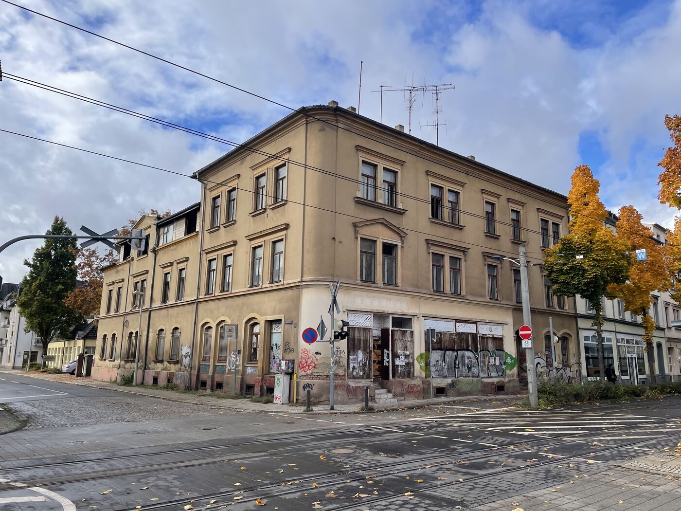 Schräg gegenüber vom früheren Café König verfällt seit Längerem ein Eckhaus. Die Zwickauer Stadtverwaltung bestätigte auf Anfrage von Stadtrat René Hahn (Die Linke), dass sich der Zustand des Gebäudes verschlechtert hat. Es handele sich um ein sogenanntes herrenloses Objekt, heißt es in der Antwort von Baubürgermeisterin Silvia Queck, der Eigentumsverzicht erfolgte 2017.