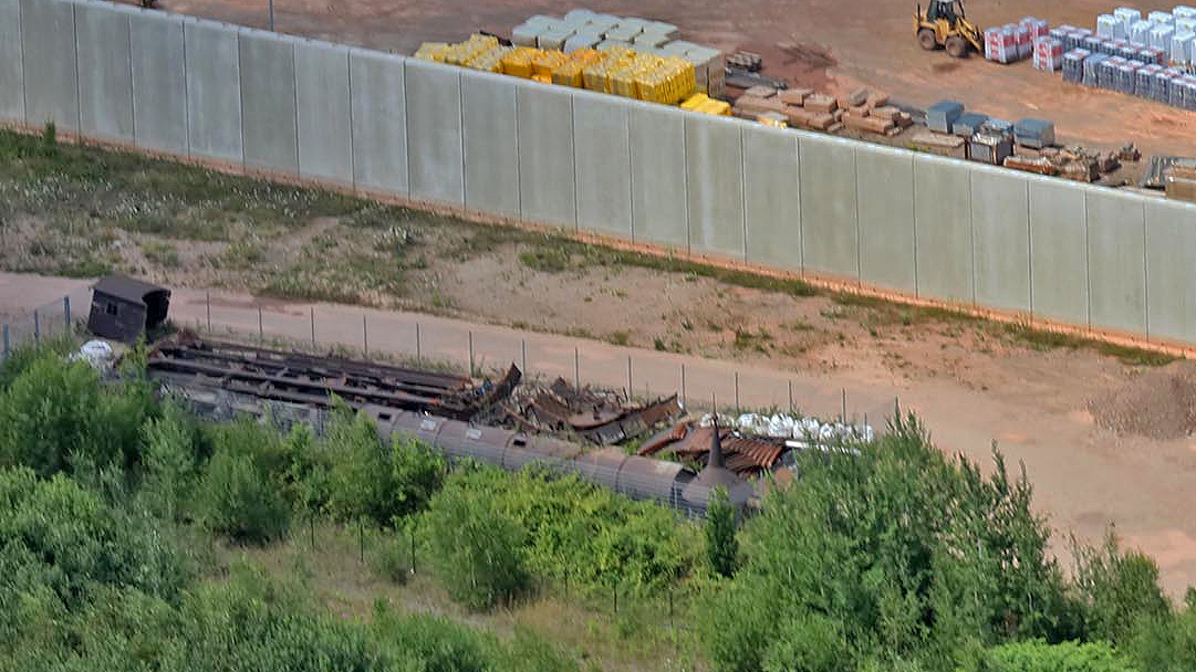 - Zerlegter Wasserturm neben der Gefängnismauer
